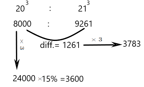 Compound Interest (CI) for 3 years at 5% per annum = ₹3,783