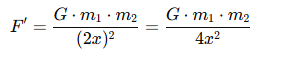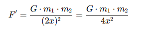 If the distance between the objects is doubled (from x to 2x), the force becomes: