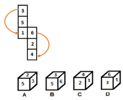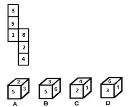 Figure D is not possible because 3 and 1 should be opposite sides.