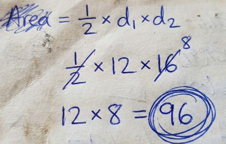 If the length of the diagonals of a rhombus are 12 cm and 16 cm, then the area of the rhombus will be: