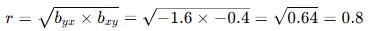 Since both coefficients are negative, r = –0.8