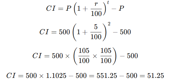 Given SI = 50 for 2 years at 5%, so
