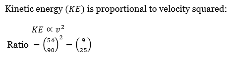 If the speed of a car increases from 54 km/hr to 90 km/hr, its kinetic energy increases in the ratio of ________.