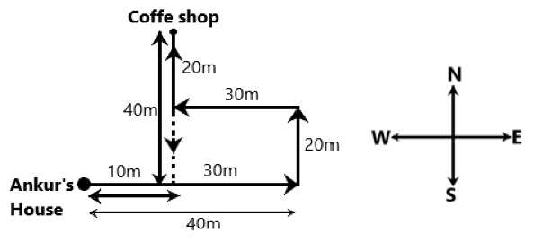 - Immediately after leaving his house, Ankur turned right and walked for 40 m .
