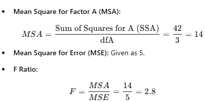 Degrees of Freedom for Factor A (dfA):