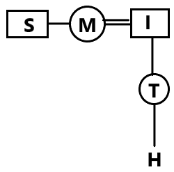'M ÷ N' means 'M' is the sister of N