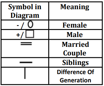 'P % Q' means 'P' is the son of 'Q'