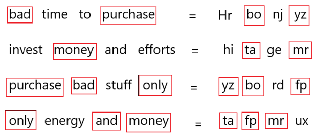 'purchase bad stuff only' is written as 'yz bo rd fp'; and