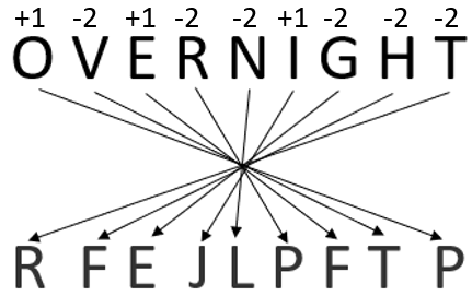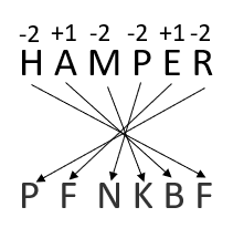 In a certain code language, 'BLESSING' is written as 'ELJQQFJZ', and 'OVERNIGHT' is written as 'RFEJLPFTP'. How will 'HAMPER' be written in that language?
