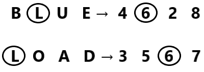 In a certain code language, ‘BLUE’ is coded as ‘4628’ and ‘LOAD’ is coded as ‘3567’. What is the code for ‘L’ in the given code language?