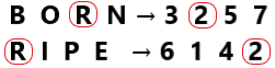 In a certain code language, ‘BORN’ is coded as ‘3257’ and ‘RIPE’ is coded as ‘6142’. What is the code for ‘R’ in the given code language?