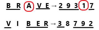 In a certain code language, ‘BRAVE’ is coded as ‘29317’ and ‘VIBER’ is coded as ‘38792’. What is the code for ‘A’ in the given code language?