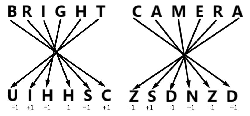 In a certain code language, BRIGHT is written as UIHHSC and CAMERA is written as ZSDNZD. How will EFFECT be written in that language?