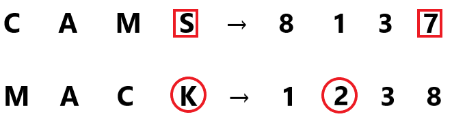 The common letters in both the words "MAC" is coded as common number codes "138".