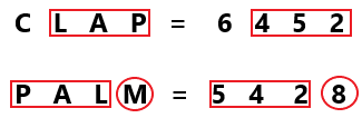 In a certain code language, ‘CLAP’ is coded as ‘6452’ and ‘PALM’ is coded as ‘5428’.How is ‘M’ coded in the given language?