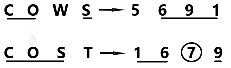 In a certain code language, 'COWS' is coded as '5691' and 'COST' is coded as '1679'. What is the code for 'T' in the given code language?
