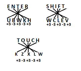 Logic - All the letters are in cross position showing below with the pattern (+3, -3, +3, -3, +3)