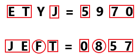 In a certain code language, ‘ETYJ’ is coded as ‘5970’ and ‘JEFT’ is coded as ‘0857’. What is the code for ‘F’ in the given code language?
