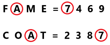 In a certain code language, ‘FAME’ is coded as ‘7469’ and ‘COAT’ is coded as ‘2387’. What is the code for ‘A’ in the given code language?