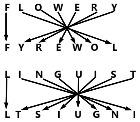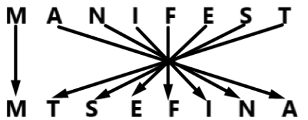 In a certain code language. 'FLOWERY' is coded as 'FYREWOL' and 'LINGUIST' is coded as 'LTSIUGNI', What is the code for 'MANIFEST' in the given code language?