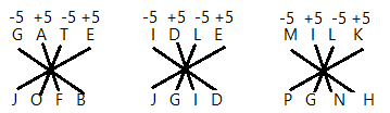 Logic: all the letters within the word first decreasing by 5 and then increasing by 5 alternatively.