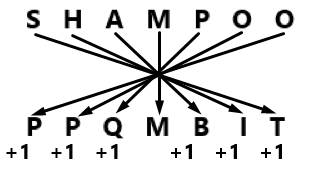 Logic - each letter increased by one diagonally.