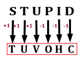 If “MOUNT” is written as “JLRKQ” in a certain code language, then how will “VICTORY” be written in this code language?