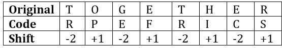 The pattern alternates between shifting -2 and +1 for each successive letter.