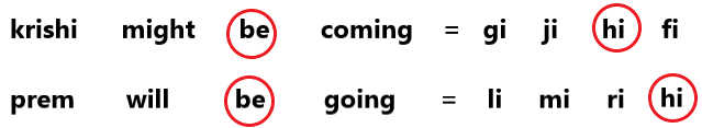 'prem will be going' is written as 'li mi ri hi'.