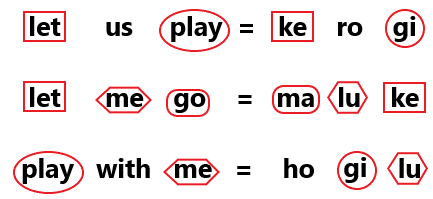In a certain code language, ‘let us play’ is coded as ‘ke ro gi’, ‘let me go’ is coded as ‘ma lu ke’ and ‘play with me’ is coded as ‘ho gi lu’. How is ‘go’ coded in the given language?