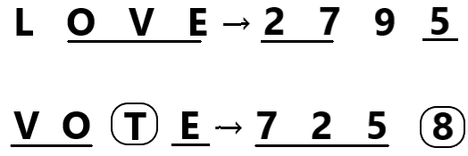 In a certain code language, ‘LOVE’ is coded as ‘2795’ and ‘VOTE’ is coded as ‘7258’. What is the code for ‘T’ in the given code language?
