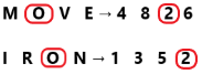In a certain code language, ‘MOVE’ is coded as ‘4826’ and ‘IRON’ is coded as ‘1352’. What is the code for ‘O’ in the given code language?