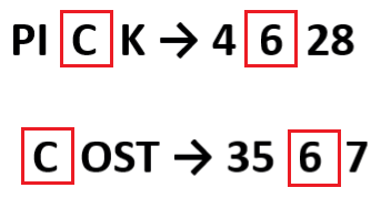 In a certain code language, ‘PICK’ is coded as ‘4628’ and ‘COST’ is coded as ‘3567’. What is the code for ‘C’ in the given code language?