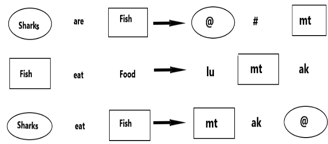 In a certain code language, ‘Sharks are fish' is written as ‘@ # mt', ‘Fish eat food' is written as ‘lu mt ak’, ‘Sharks eat fish’ is written as 'mt ak @'. What is the code for 'Sharks' in that code language?