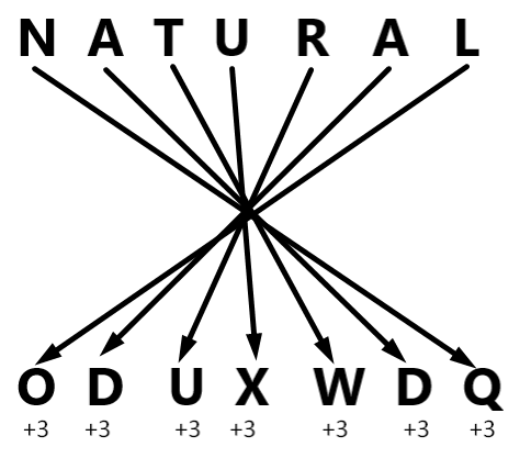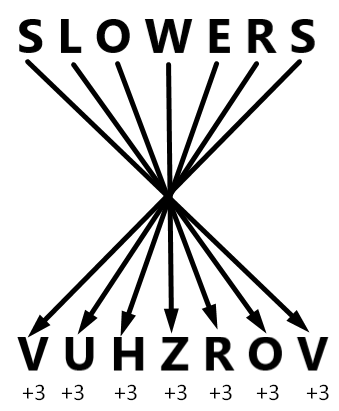 In a certain code language, 'SLOWERS' is written as 'VUHZROV'. What is the code for 'NATURAL' in that code language?