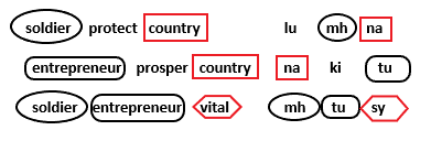 In a certain code language,‘soldier protect country’ is coded as ‘lu mh na’,‘entrepreneur prosper country’ is coded as ‘na ki tu’ and‘soldier entrepreneur vital’ is coded as ‘mh tu sy’.What is the possible code for 'country vital' in that language?
