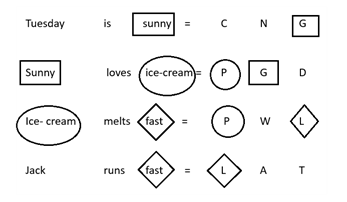 In a certain code language. "Tuesday is sunny' is written as 'CNG', "Sunny loves ice-cream' is written as 'PGD', 'Ice- cream melts fast' is written as 'PWL' and 'Jack runs fast' is written as 'LAT'.