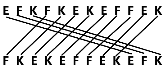 In a certain code, OQIOIQOQQIOQ is written as OIQOQQIOQOQI. How will EFKFKEKEFFEK be written as in that code?
