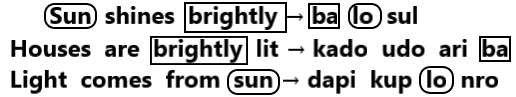 A: Sun shines brightly is written as ba lo sul