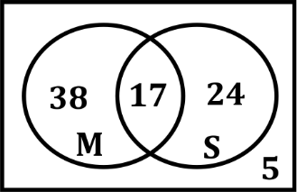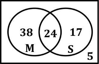 ⇒ n(M ∩ S) = 72 - 67
