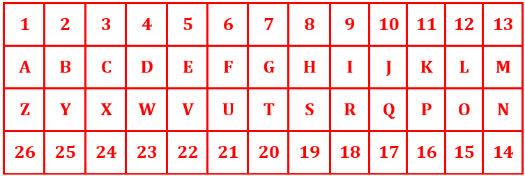 Place of K is the according to table (K comes at 11th position) = 11