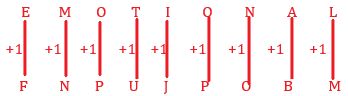 ? = First letter = E + 1 =F
