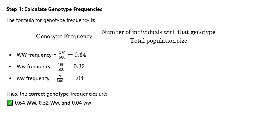 - The dominant allele (W) frequency is found by adding all WW individuals and half of Ww individuals.