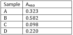 Thus, absorbance is inversely proportional to exotoxin concentration (contamination):