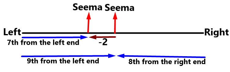 Seema was shifted two places towards the left and became the 7th girl from the left end.