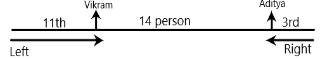 In a row of people standing facing north, Vikram stands 11th from the left end of the row. His friend Aditya stands 3rd from the right end. There are 14 people standing between Vikram and Aditya. How many people are standing in that row?