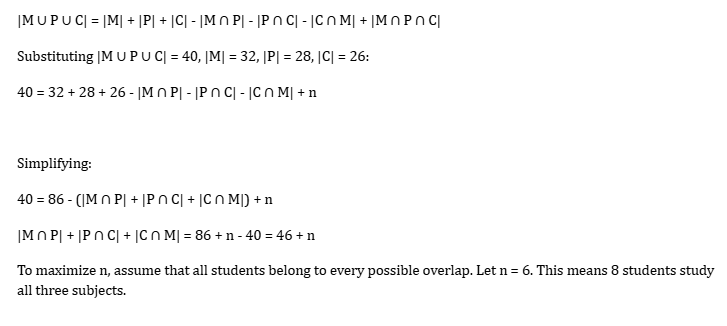 Let n be the number of students who study all three subjects. Using the principle of inclusion-exclusion:
