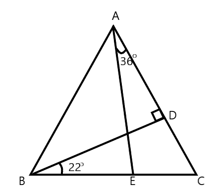 In △ABC, BD ⟂ AC at D and ∠DBC = 22°. E is a point on BC such that ∠CAE = 36°.