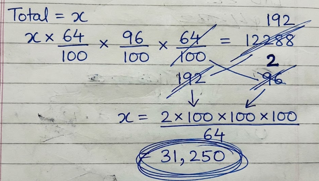 Total votes cast = (X × 64) / 100 = 0.64X