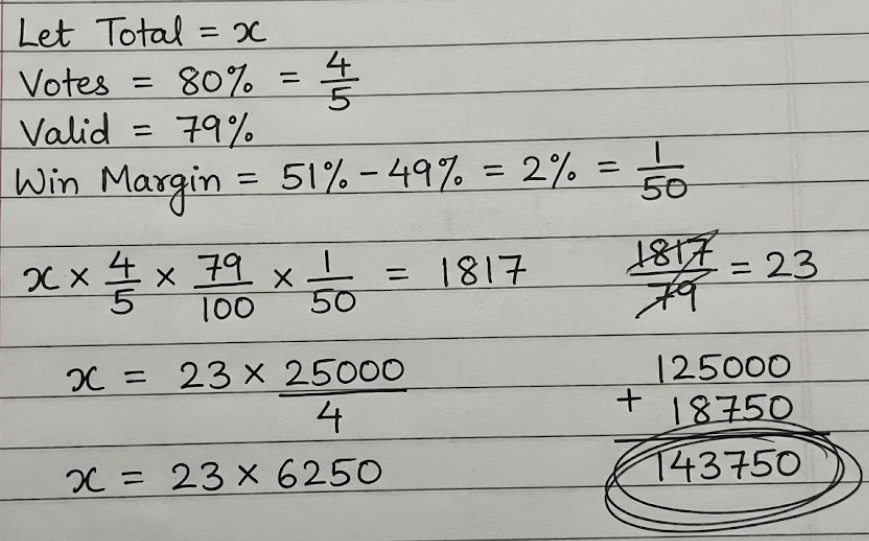 Invalid votes = 21% of 0.8x = 0.168x